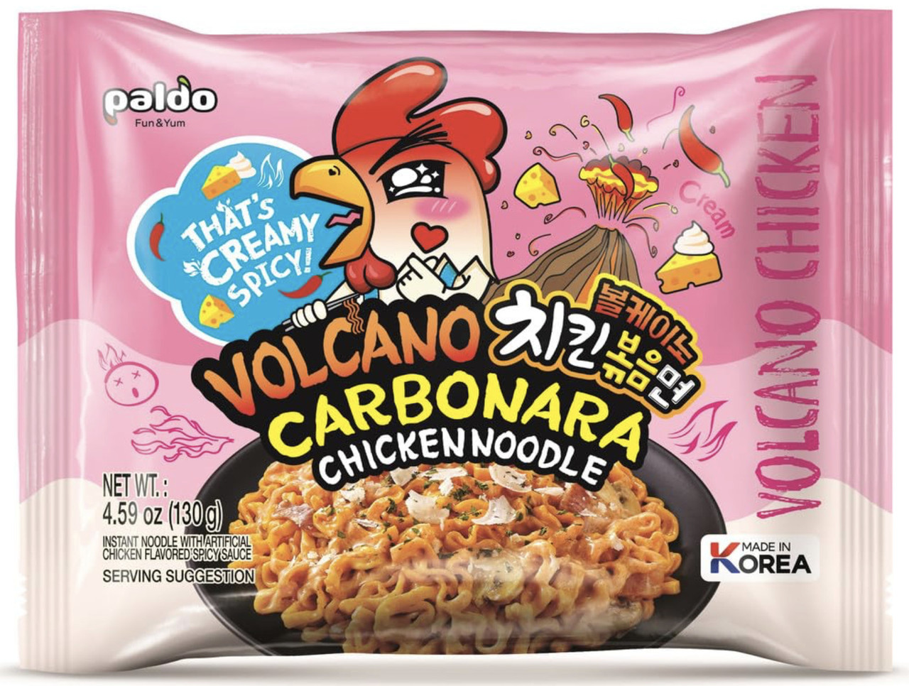 Корейський рамен Paldo Vulcano Карбонара, 130 г — вибухово-гостра курка з кремовим італійським акцентом